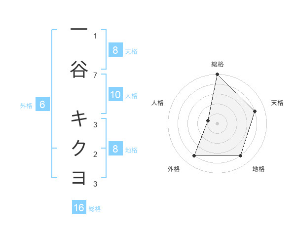 一谷 キクヨさんの天格は8画の4点!