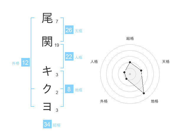 尾関 キクヨさんを姓名の画数から五運を鑑定