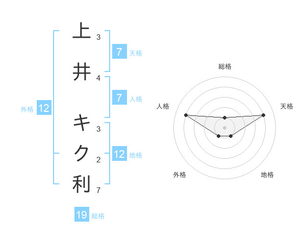 上井 キク利さんの天格は7画の4点!