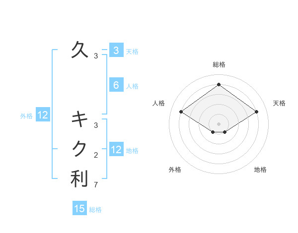 久 キク利さんの総格は15画の4点!