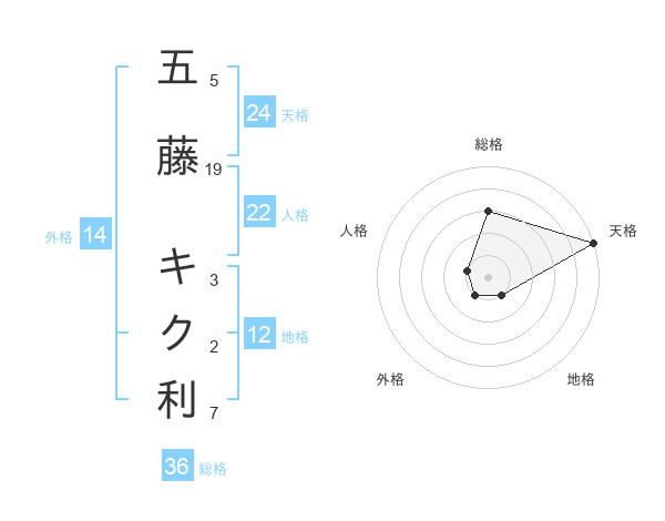 五藤 キク利さんを姓名の画数から五運を鑑定