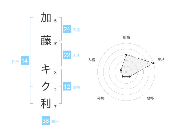 加藤 キク利さんを姓名の画数から五運を鑑定