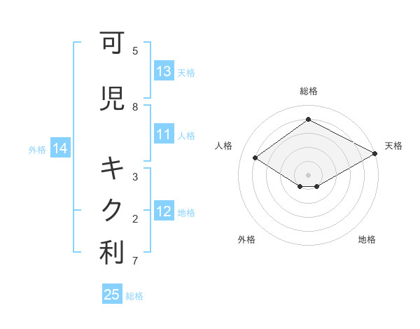 可児 キク利さんの天格は13画の5点!