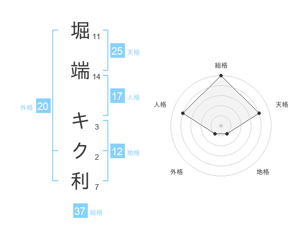 堀端 キク利さんの総格は37画の5点!