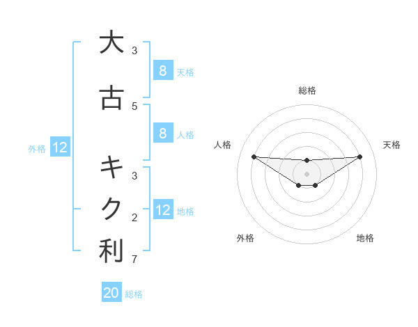 大古 キク利さんの天格は8画の4点!