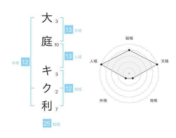 大庭 キク利さんの天格は13画の5点!