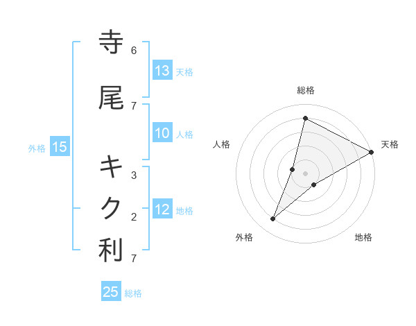 寺尾 キク利さんの外格は15画の4点!