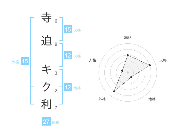 寺迫 キク利さんの天格は15画の4点!
