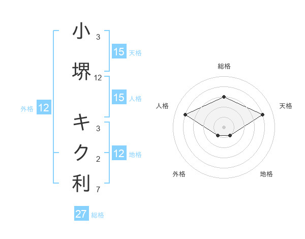 小堺 キク利さんの外格は12画の1点!