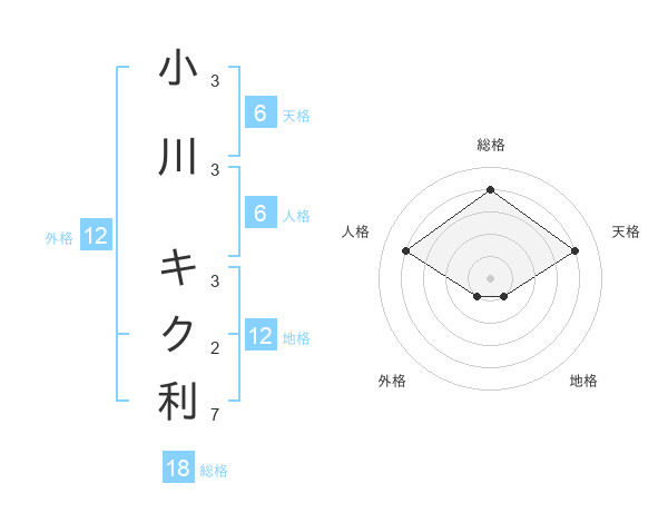 小川 キク利さんの総格は18画の4点!