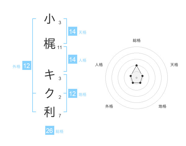 小梶 キク利さんを姓名の画数から五運を鑑定