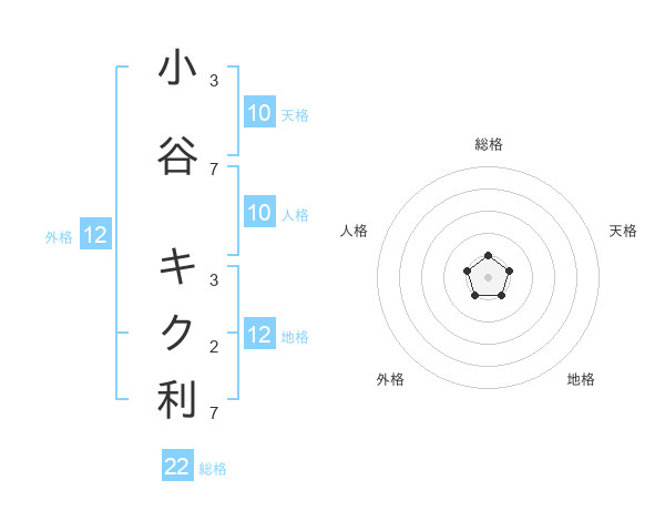 小谷 キク利さんを姓名の画数から五運を鑑定
