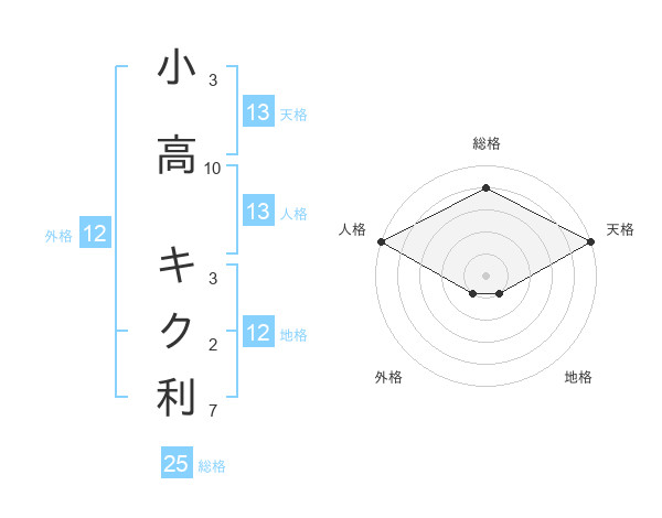 小高 キク利さんの天格は13画の5点!