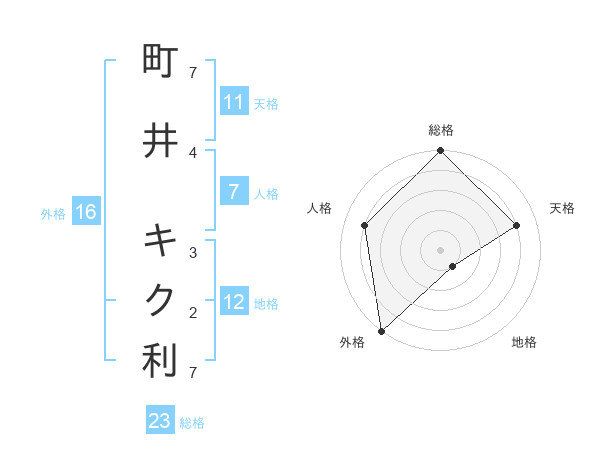 町井 キク利さんの天格は11画の4点!