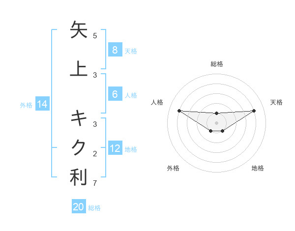 矢上 キク利さんの総格は20画の1点!