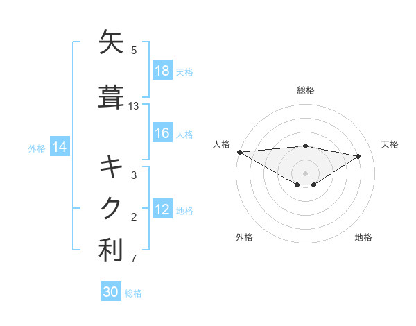 矢葺 キク利さんの天格は18画の4点!