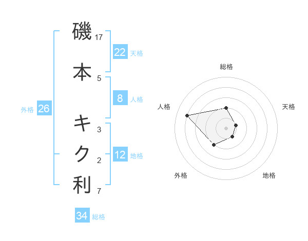 磯本 キク利さんを姓名の画数から五運を鑑定