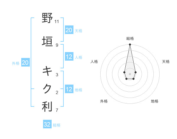 野垣 キク利さんの総格は32画の5点!