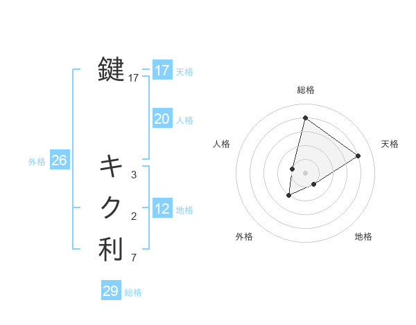 鍵 キク利さんの総格は29画の4点!