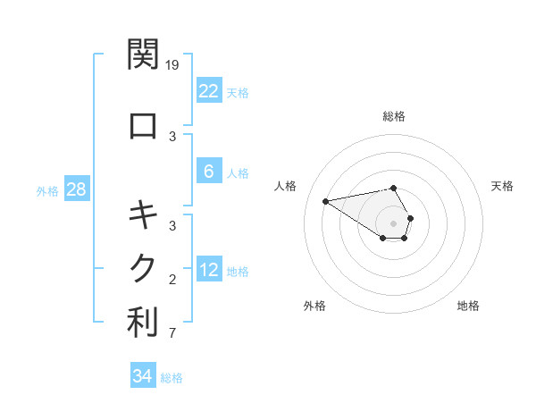 関口 キク利さんの総格は34画の2点!
