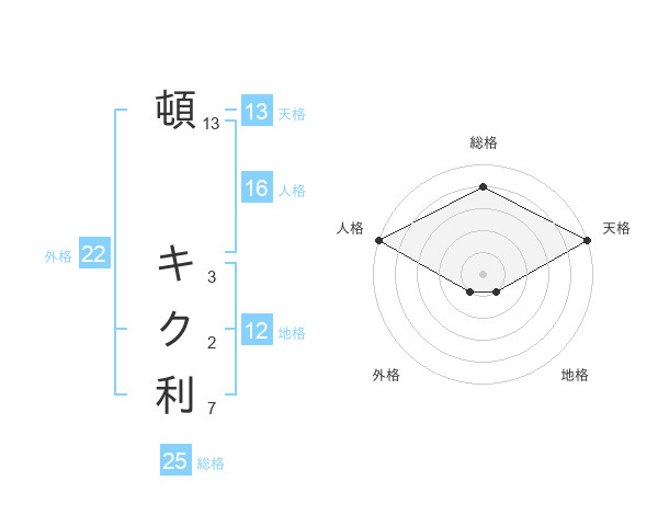 頓 キク利さんの総格は25画の4点!