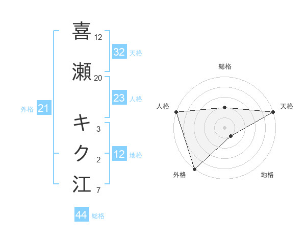 喜瀬 キク江さんの総格は44画の2点!