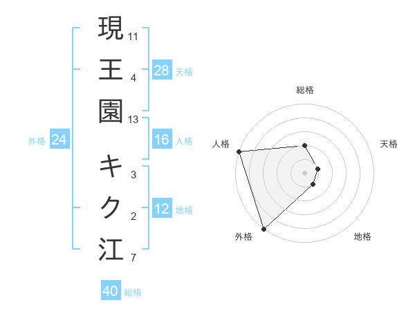 現王園 キク江さんを姓名の画数から五運を鑑定