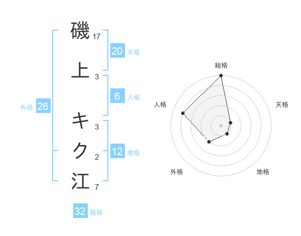 磯上 キク江さんの総格は32画の5点!