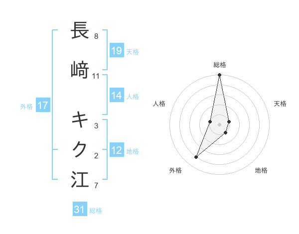 長﨑 キク江さんを姓名の画数から五運を鑑定