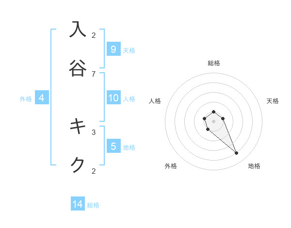 入谷 キクさんの総格は14画の1点!