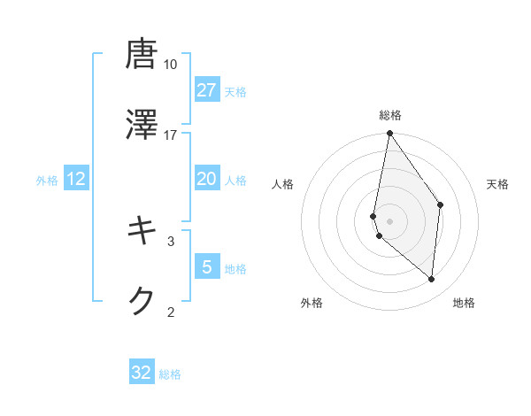 唐澤 キクさんの総格は32画の5点!
