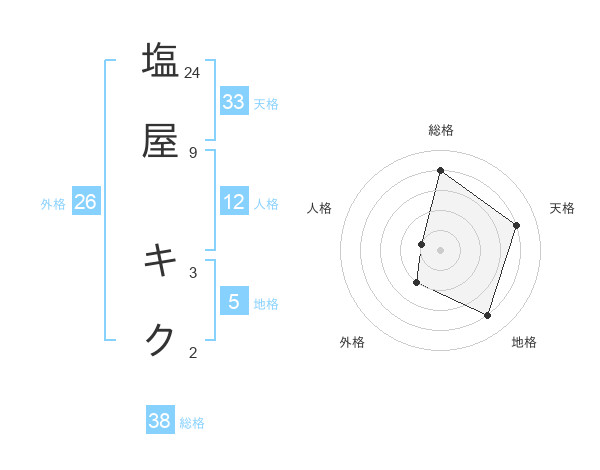 塩屋 キクさんの総格は38画の4点!