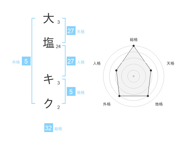大塩 キクさんの総格は32画の5点!