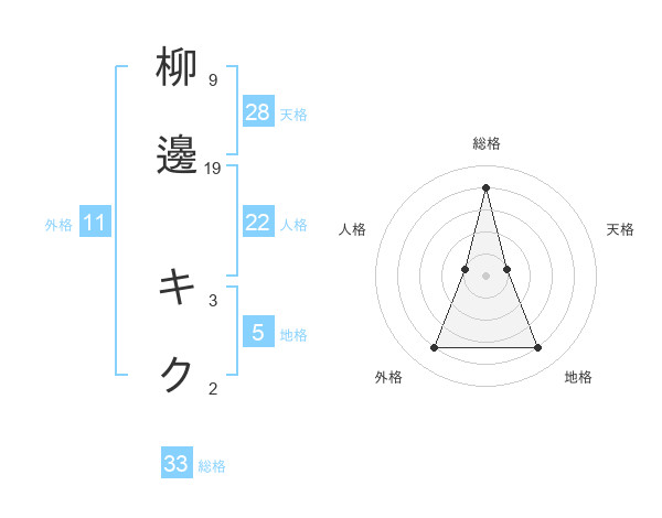 柳邊 キクさんの総格は33画の4点!