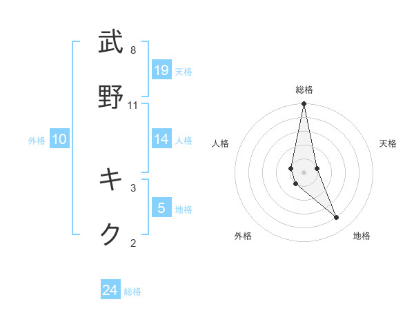 武野 キクさんの天格は19画の1点!