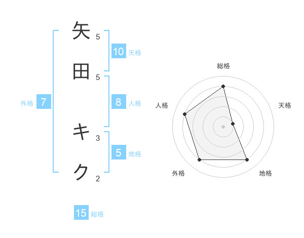 矢田 キクさんの外格は7画の4点!