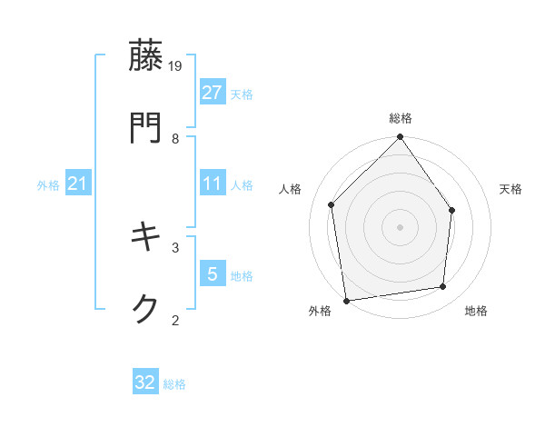 藤門 キクさんの外格は21画の5点!