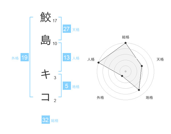 鮫島 キコさんの総格は32画の5点!