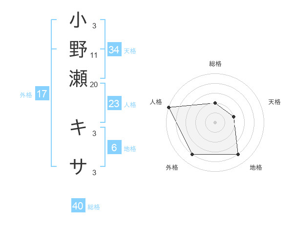 小野瀬 キサさんを姓名の画数から五運を鑑定
