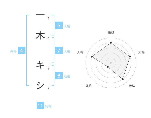一木 キシさんの天格は5画の4点!