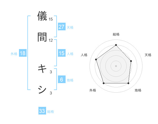 儀間 キシさんの総格は33画の4点!