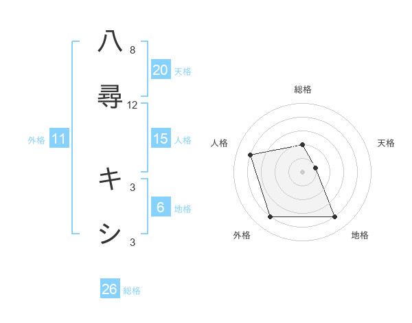 八尋 キシさんの総格は26画の2点!