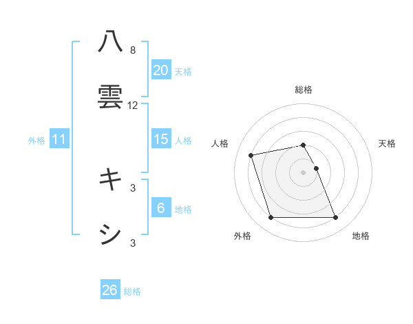 八雲 キシさんの総格は26画の2点!