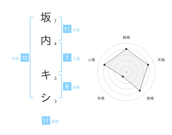 坂内 キシさんの総格は17画の4点!