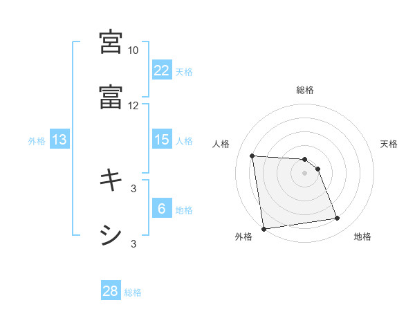 宮富 キシさんの総格は28画の1点!