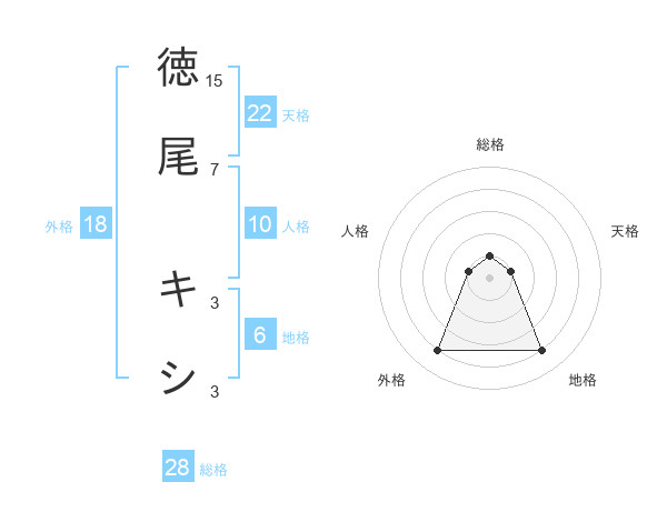 徳尾 キシさんを姓名の画数から五運を鑑定