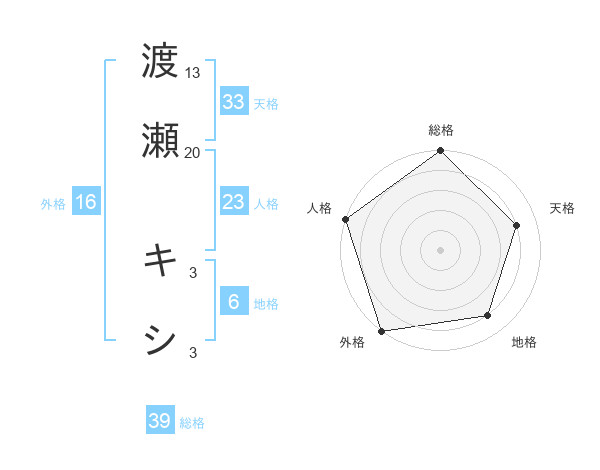 渡瀬 キシさんを姓名の画数から五運を鑑定