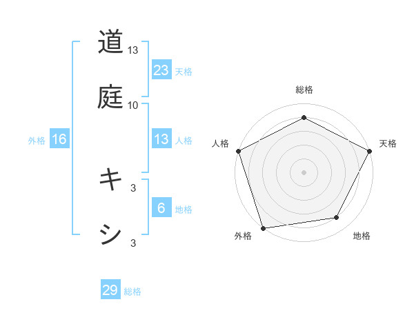 道庭 キシさんの天格は23画の5点!
