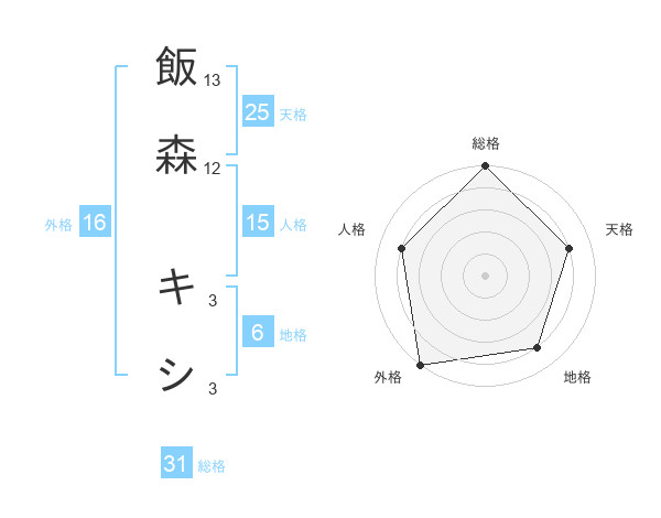 飯森 キシさんの総格は31画の5点!