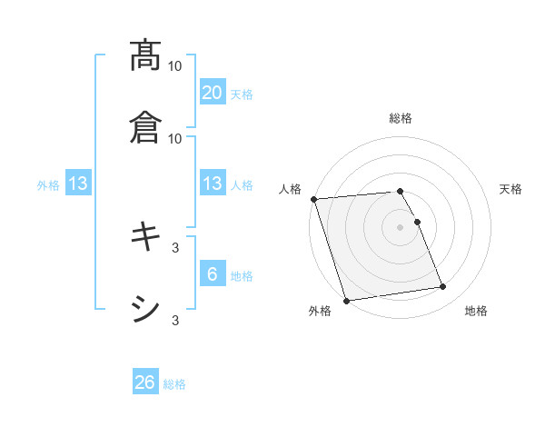 髙倉 キシさんの総格は26画の2点!
